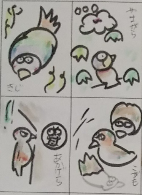 帝は、太い筆を手にして、ぐぐっと引っ張ってべしゃっと水を置いて、大枠を描き終えた。