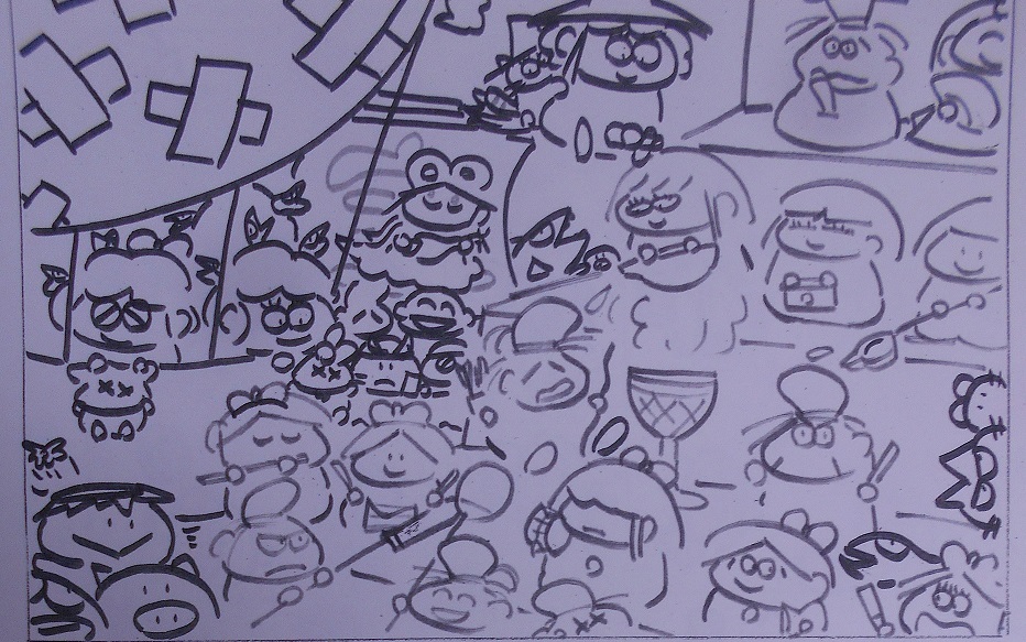 何人の人物又はドウブツ又は妖怪など、がいるでしょう。洩らさずに数えられますか。