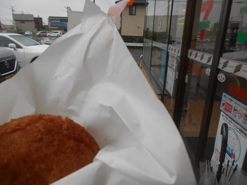 日の丸ではありません。セブンイレブンのカレーパンです。雨がひどくなってきたのですが、腹が減ったので歩きながら食って旅行く。青春の彷徨のころのごとくである。