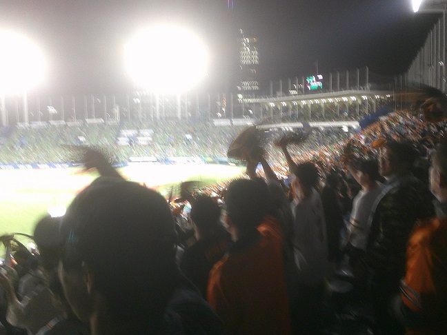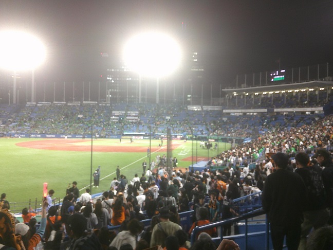 試合終了です。去年までだと原監督への怒号などが飛び交っていたが、今年は今のところみんな喜んでいるようだ。まともなチームになりましたからね。