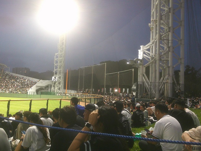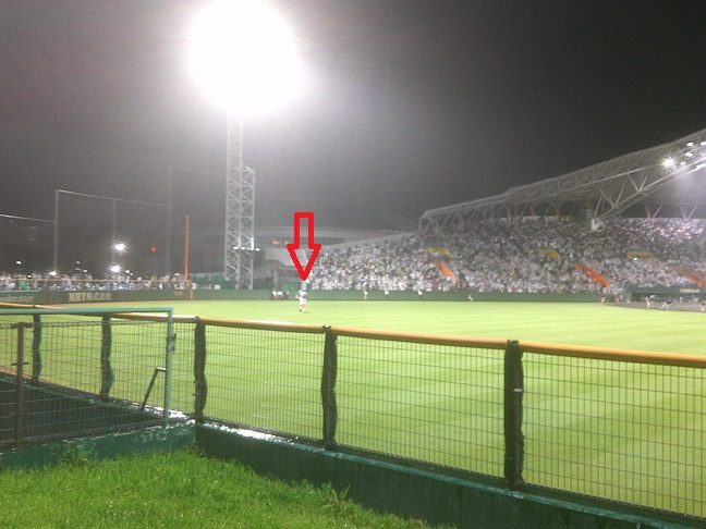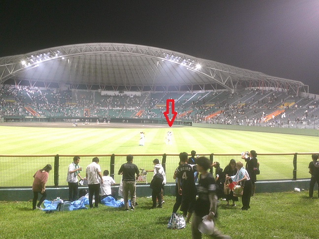 昨日以上の満員なので、地方球場恥の掻き捨ての原理により立ち入り禁止のカメラ区域に入り込もうとする。もちろん追い出されます。