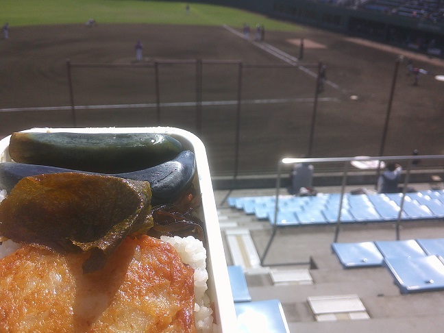 ちなみに、今日はフリーマーケットが出ており、試合も「フリーゲーム」(無料試合)。はじめチケット売り場がないので、係のひとに「もう売り切れたの?」とつっけんどんに訊いたら、「フリーゲームです」といってチケットくれたので大喜び、「ありがとうございます」と何度も頭を下げて球場内へ。この年になって、こんなことで米つきバッタとは、情けない。