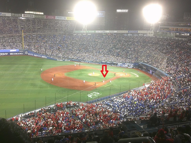 到着。発表3万3000人で「満員御礼」って虚構はやめてほしいです。それにしてもこの球場、イベントもの多いですね。イニングごとに花火打ち上げ感あります。ディアーナ(チアーの女の子)も19人もいるんですよ。