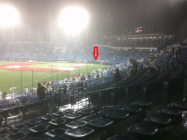 20時08分に中断。天候回復はしばらく見込めないので何を待っているのかと思ったが、ほんとに「規定どおり」中断から30分経過した20時38分に山路出てきてコール。いい加減にしろ。何から何まで判断間違いやがって・・・とも言いたくもなるでございますよ。