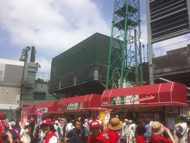 いい天気です。飲食物は持ち込んではいけないので、球場内の何処かで買いましょう。