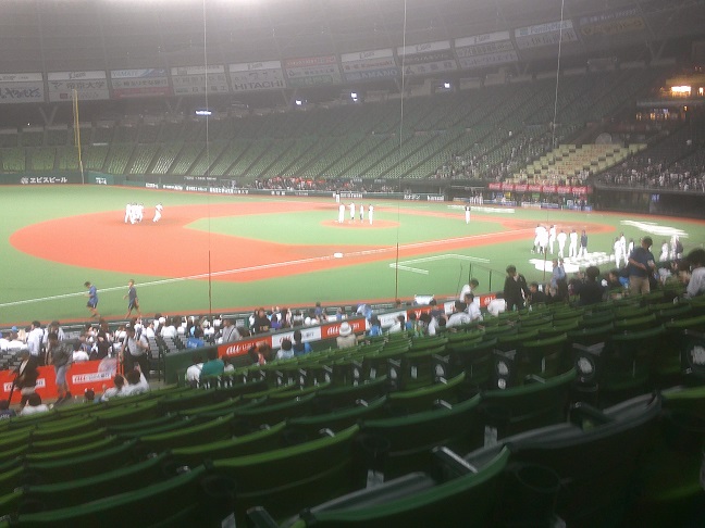 西武電鉄の連絡の悪さに悪態つきつつ到着。なんとか六回裏同点の場面に入れました。まあいいか。いいっすよ。そのかわりちゃんとこの球団建て直してやってくださいよ。