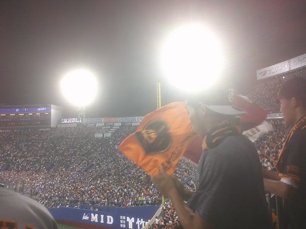 今日は1600円のレフト側外野立見へ。ジャイアンサポの熱い人たちの中に入れてもらうのだ。