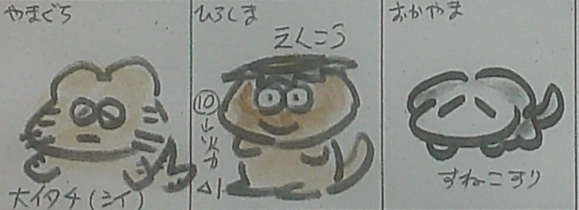 山陽地方を代表する妖怪たちだ。おめでたそうで、怖ろしさを持とうとか威嚇しようといった志が全く感じられない。