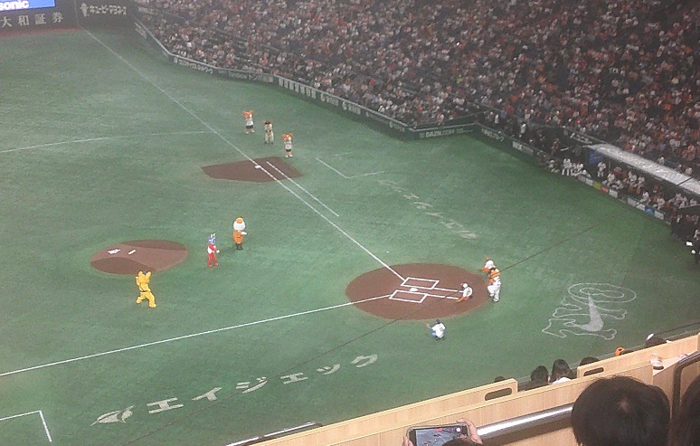 今日は東京ヒーローズデーで、海保のうみまる、東京消防庁の何やら、警視庁のピーボが始球式、という豪華メンバー。ピーボがサウスポーだったことも発見ですが、さりげなく消防庁のやつはこんなの着込んでストライクボール投げ込んでたのには感心した。鍛えてるな。