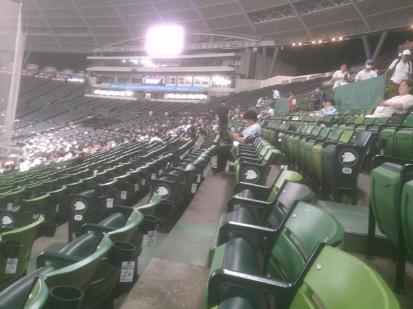 毎日来ている(一人ひとりが来ているかどうかは知りませんけど)好事家のみなさんだ。ライオンズファンは、ちゃんと投手が出てくれば拍手をし、スリーボールになれば励ましの拍手をする体育会系です。