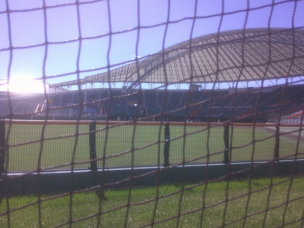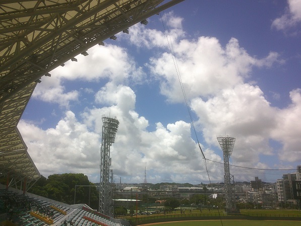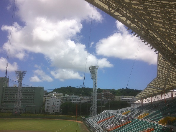スコアボード方面。ときおりこの向こうの方を軍用機も飛んでます。やっぱりかっこいいね。