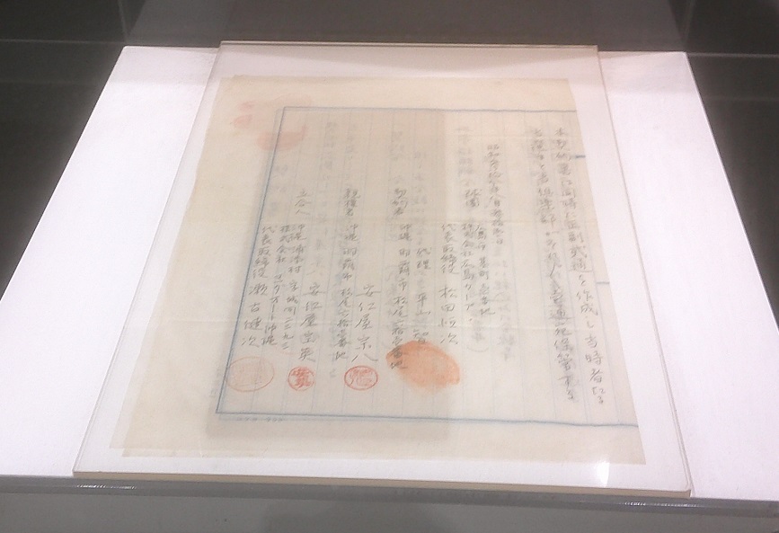 安仁屋宗八氏と廣島カープとの契約書。鹿児島本線に乗せられてスカウトに取り囲まれてハンコを押させられた、という。