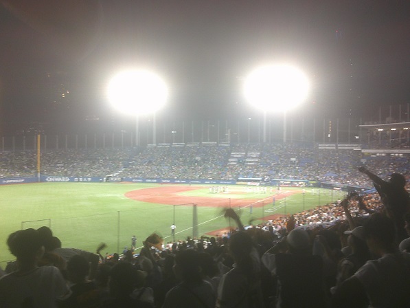 到着は七回裏。名物のうどんは売り切れ(暑くて食べられなかったであろうが)ていた。八回表、ベイス投手が堀岡に交替した途端、マリンがぼこぼこに打って打者一巡で5点。気持ちよかったね。