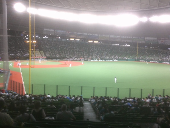 試合終了です。このあと、ベンチ前に整列して三塁側スタンドに一礼したライオンズナインに左翼席のファンから激しいブーイングが。さらに引き上げずに集会状態になってました。ファンの怒りの示威行動の呼びかけかなんかで昨日より多かったのでしょう。ああそれで今日の入場時に珍しく荷物確認してたのか・・・。
