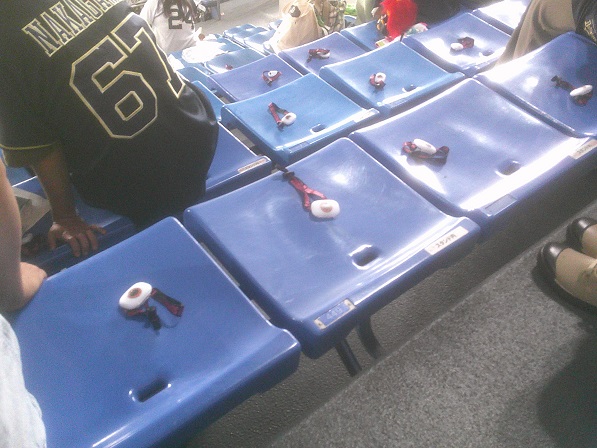 こんな「リストバンド」が全席(外野ビジターも)に置かれています。
