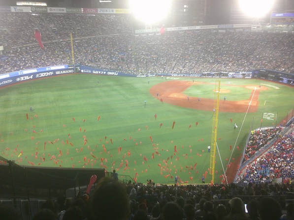 試合終了。このあとカープシャイナーヒーローインタビューがあり、その後キッズナイトと称して炎を噴いたりするショーがあるという。試合の勝敗等に関わらず、行われる。わたしは野球を見たいだけなので帰ります。