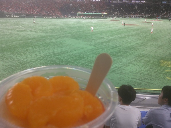 両チーム応援団は「トレイントレイン」と「銀河鉄道999」ばかりで少しは地域色を出してほしいところ、東日本は楽天イーグルスのチャンステーマを二曲ぱくっていました。西日本は特に工夫もなし。応援コンクールでは東日本が仙台七夕に新幹線の模型みたいなの出してきて、これも同じようなものになるのではないかと心配したが、西日本はみんな集まってきてただ「宮嶋さんの神主が~」を歌って終わりになっていました。たいへんシンプルでよろしい。外野の客は明確に「今日のカープはかっちかち、かっちかち」と歌ってたので、みんなあれをカープの応援歌だと思っているのかも知れません。