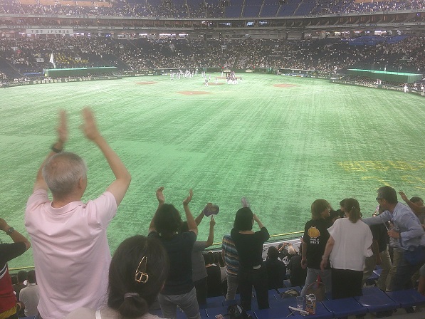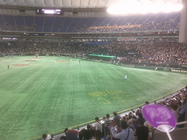 戸田から戻ってきて、喫茶店に行こうかな、と思ったが、「まだ間に合うんじゃないか」と東京ドームへ行ってみる。涼しいし、空いてたら外野席で勉強できるかも・・・。