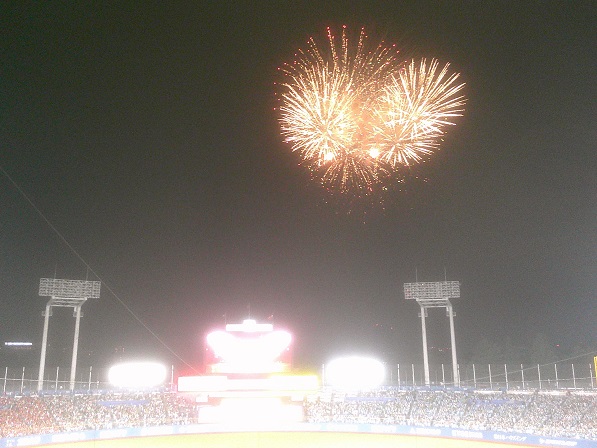 花火大会だ。両投手の努力で、昨日より一時間ぐらい早く花火の時間にこぎつけた。