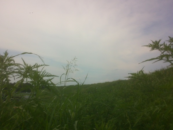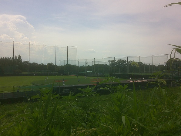 すごい草むらになっています。確認したら戸田球場は5月12日以来のようですから、季節は大きく進んでいたのだ。小さい虫も多い。日影がどんよりして、空の色が鈍く、危険なほどの熱を含んでいる。