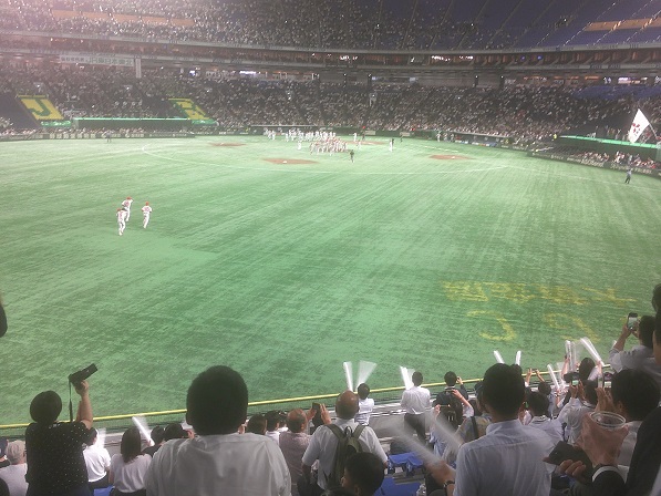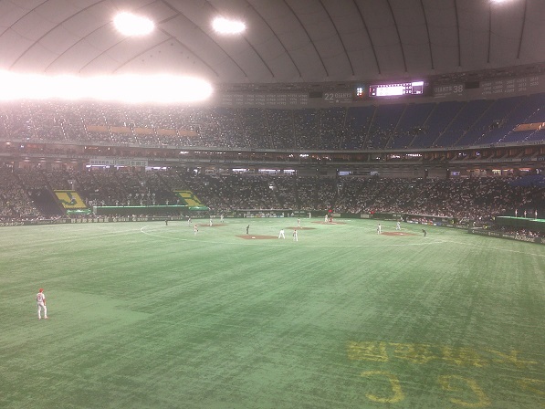 シゴトが延びたこともあって幕張まで行ったらもう七回近いんではないかと思い、もったいないのですが千葉のチケットをムダにして、東京ドームに行ってしまいました。普段だと権威に易々と従うしかないわれらですが、今日は都市対抗(決勝)やってますから、選択肢があるわけだ。