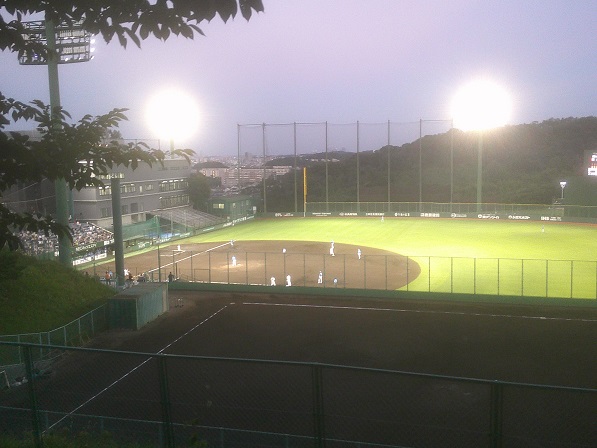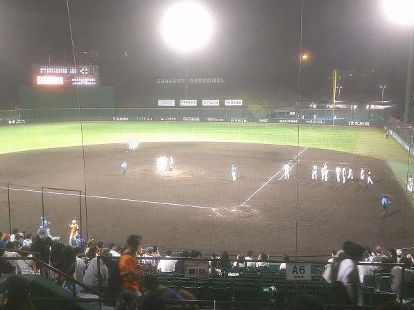 山の中の球場なのでナイターは一段と映えますね。近所の農家(阪神ファンと言われていた)とトラブルがあってナイターできないと言われてましたが、解決したかはじめからただのウワサだったか。