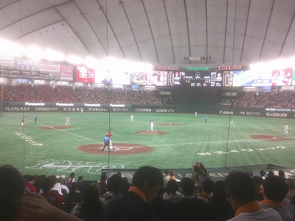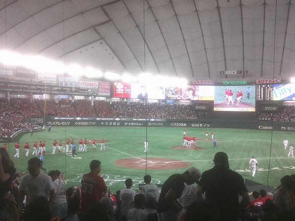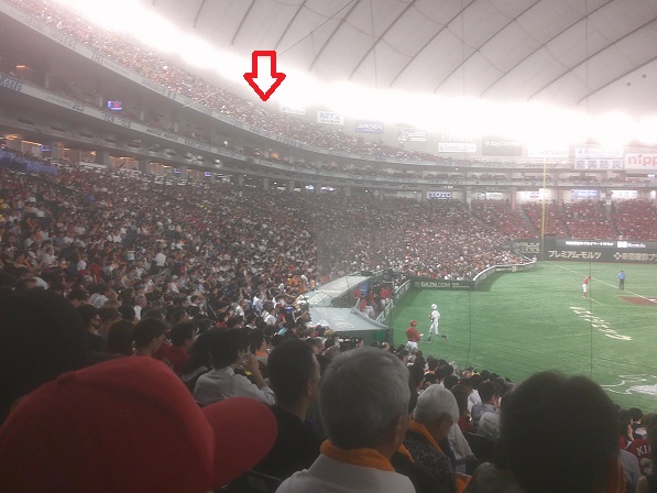 普段とは違うところにいるぞ。KK氏のおかげでこんな席に座ることが可能に。カープファンのHF氏との観戦になりました。