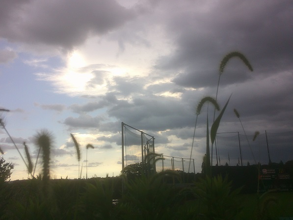 いかにもの空模様とすごい生物相になってそうな草むらの中で、一雨きたらどこに逃げようか画策中。