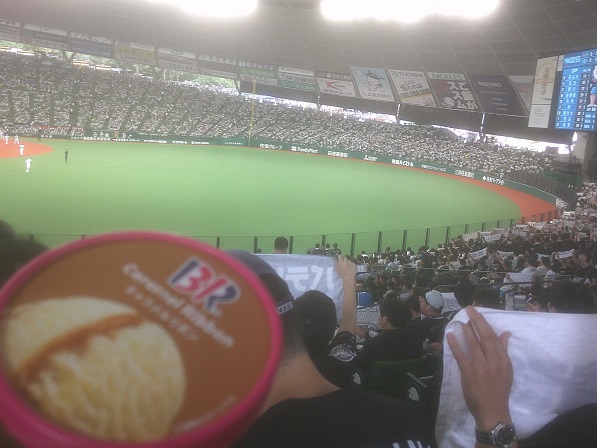 さすがに完全試合実地で見れたらどうしよう、お詫び?に歩いて都内まで帰るとか三日ぐらい絶食とかの苦行はしなければならないのでは・・・と無暗にどきどきしてました。これは六回表、継続中。