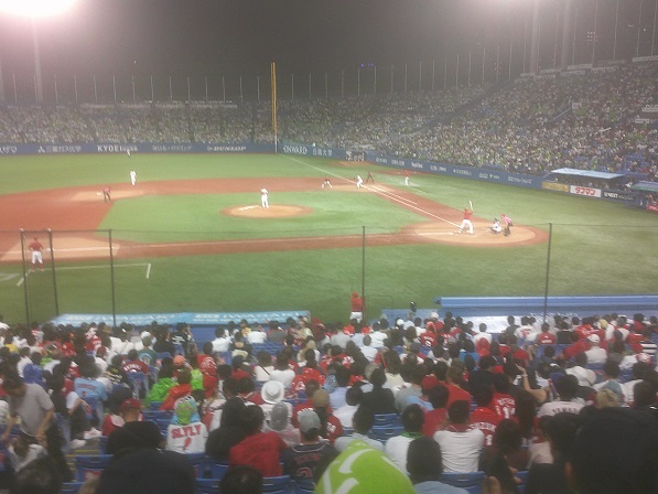 到着した三回は廣島全盛期で、タイムリーも出るし走塁も悪くないし・・・と思いましたが、四回裏に村上28号2ラン以降、ずるずると守り切れない、一点でなくて二点も取られる野球に徹して、チャンスも2アウトから、単打のみ、といった神宮でのカープはもともとこんなチームですが、ほんとに元気ありませんね。これが二週間前までは優勝するような雰囲気ぶいぶいだったチームとは・・・。