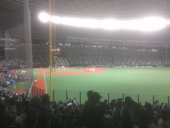 今日も完売御礼です。今日の試合ならライオンズファンも納得でしょう。なお、お年寄り、子ども連れが多いことから、エンタメ路線が成功しているのだと思います。エンタメ路線で小金を持っているやつらを集めてくるとは。「ライオンズだからいいか」という気持ちになってしまうが、西武とか国土建設とかいうと何かなあ、という気持ちになります。なりませんか。