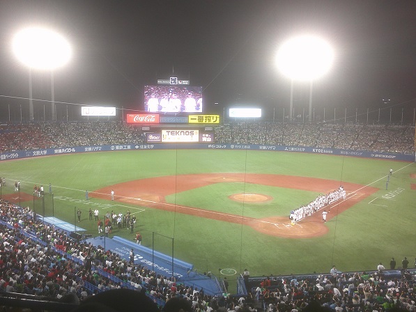 試合終了。八回裏には二人ランナー出して青木に回す人情を見せるかと思ったが、マジメにやりやがって。球場全体がちょっとがっかりしてました。