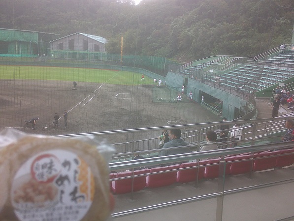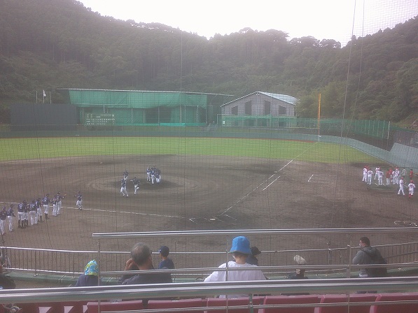 日南天福球場。なお、この辺りは飫肥と合併して日南になる前は油津町。油津はもとは吾平津(あひらつ)といい、吾平はこのあたりから北の鵜戸神宮あたりまでの海郷であったと思われる。