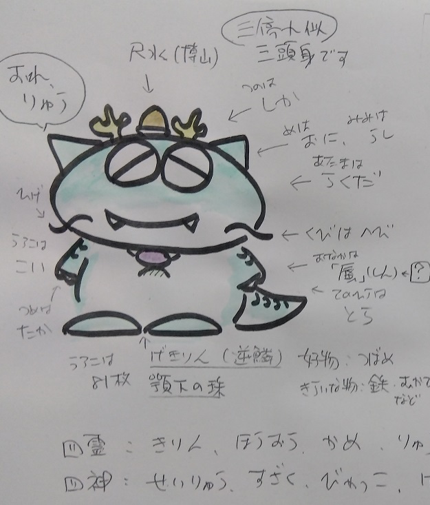 おれは、ヘビでなくて龍でロン。体中に八十一枚のウロコがあるが、一枚だけ逆向きなんでロン。触ってみる?