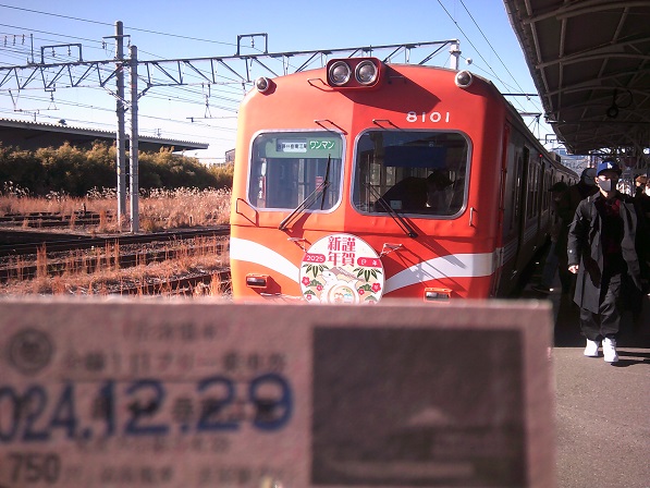 硬券だ。有名な開運ダルマ電車には乗れませんでしたが、謹賀新年号に乗れました。