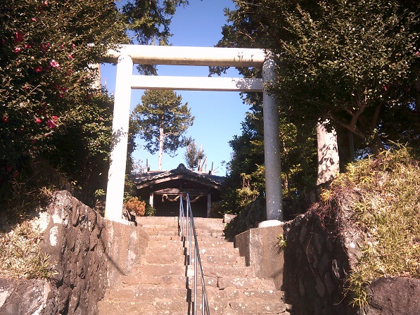 富士山に向かって根方街道から登って行って、おそらく昔は集落の最高点であったろう場所に、神社があります。沖縄のウタキとつくりは同じさー。