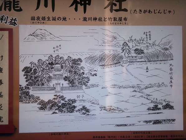 〇竹採屋布(たけとりやしき)、かぐや姫生誕地滝川神社(浅間下方五社)・・・ よしながという村ですが、もと駿河浮島に富士側から張り出した「岬」であったため「御崎神社」があります。