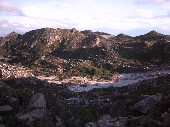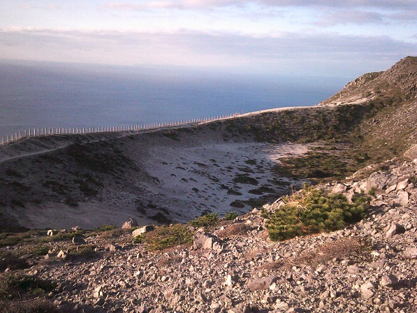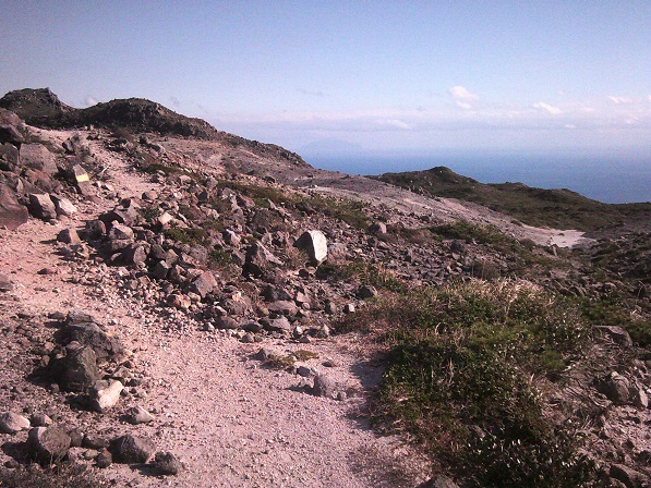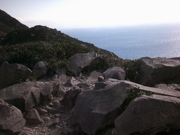 向こうに海が見えます。この先は断崖で、それを縫って白島口の登山道があります。このあとそちらから降りる予定。その前に、最高点などを窮める。