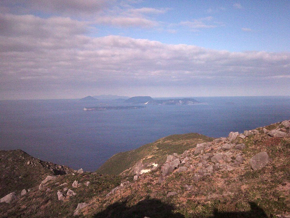 式根、新島、利島、大島が見えます。新島も大島も二つに見えるからめんどうです。