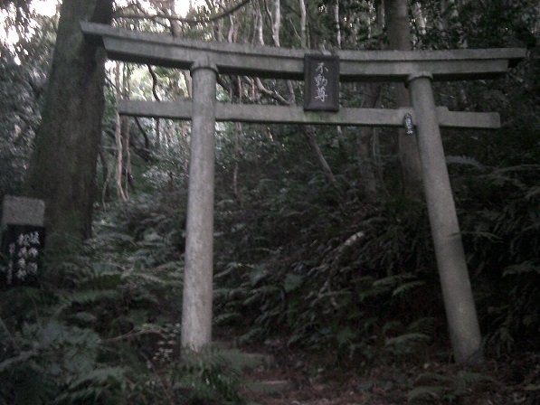 四合目まで降りてきました。鳥居の額をみると「不動尊」が信仰の本来の対象であることがわかります。