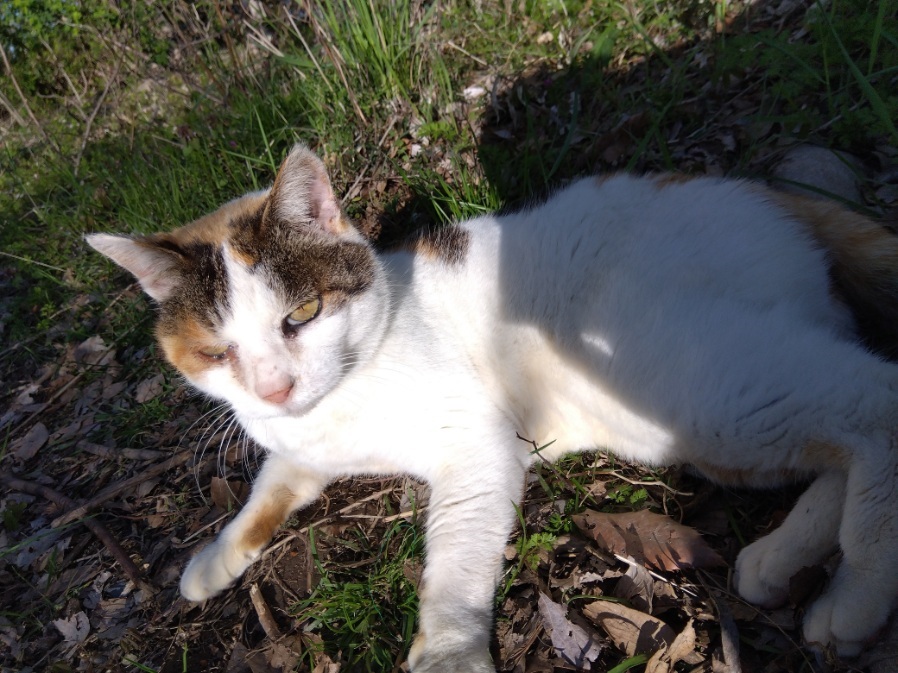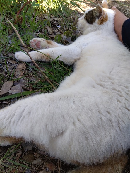 今日はこちらの白ミケを発見。なんか弱っているように見えます。