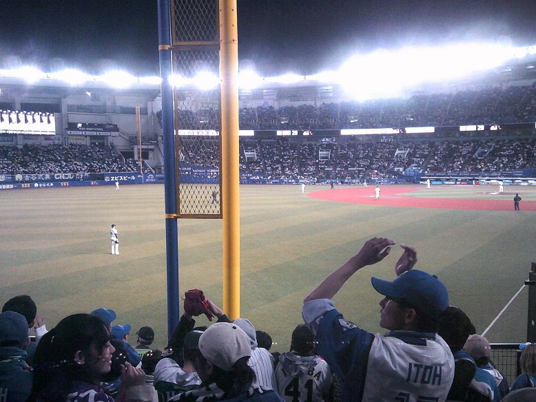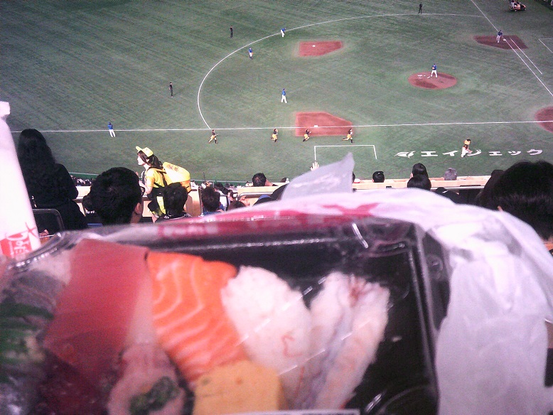 今日は田中まーがボコられたようです(2回6失点とのこと)。到着時にはもういなかったからどんな様子だったかはわかりません。今日も昨日のようなスピードで進んだが、さすがにどこかから叱られたのか、最終回、山崎康が出てきて盛り上げて3時間ゲームにした。よく出来てます。