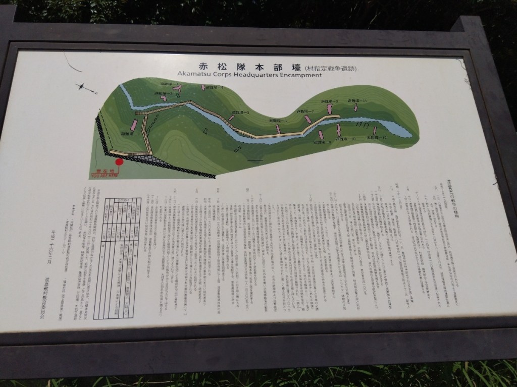 〇赤松隊部隊壕 ・・・12の壕の前まで入れます。渡嘉敷は赤松隊長のもと、他島とは違った特異な島嶼戦が行われており、米軍の上陸(3月27日)に絶望した村民の3月28日の集団自決(4月2日にはロスアンジェルスタイムスで報道)があり、また、捕虜となった島民や、伊江島島民の収容所となったため伊江島島民が、数次にわたって降伏勧告に来たのを利敵行為としてことごとく処刑、8月16日に天皇陛下の詔勅をもたらした島民も処刑、各地で即決裁判で処刑されたことはあったと思うのだが、ここは処刑に斬首を用いた点が特殊です。公的記録はないが、約10人の朝鮮人労務者が処刑及び焼死している。18日に部隊降伏して戦闘状態は終了した。