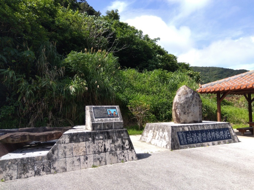 右側は慶良間節の顕彰碑で、左は鬼慶良間の伝説を記す。