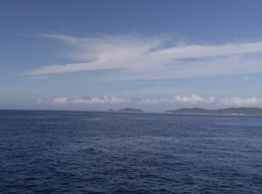 右端から前島、中島、果(はて)の島。前島の「まえ」は那覇の前にあるからなのかと思っていたが、渡嘉敷の港から出るとこの並びで見えるから「まえ」「なか」「はて」なんですね。