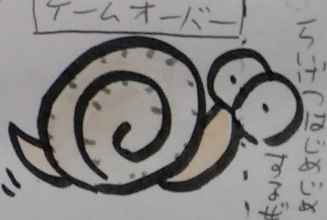 梅雨時は、粘液でさらに気力と体力を奪われるデンデン。