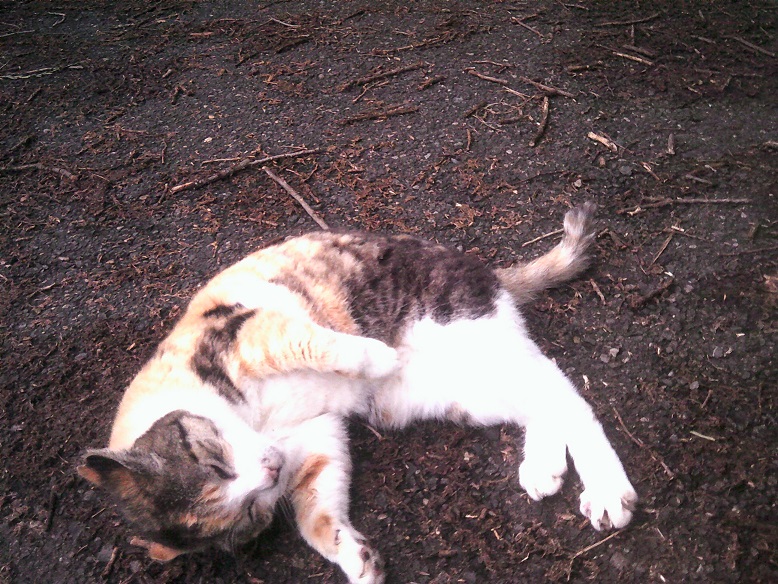 にゃんげんはおれたちの家族ではなくコブンにゃぞ。(死んでいるのではありません。しりたたきでごろごろしている)