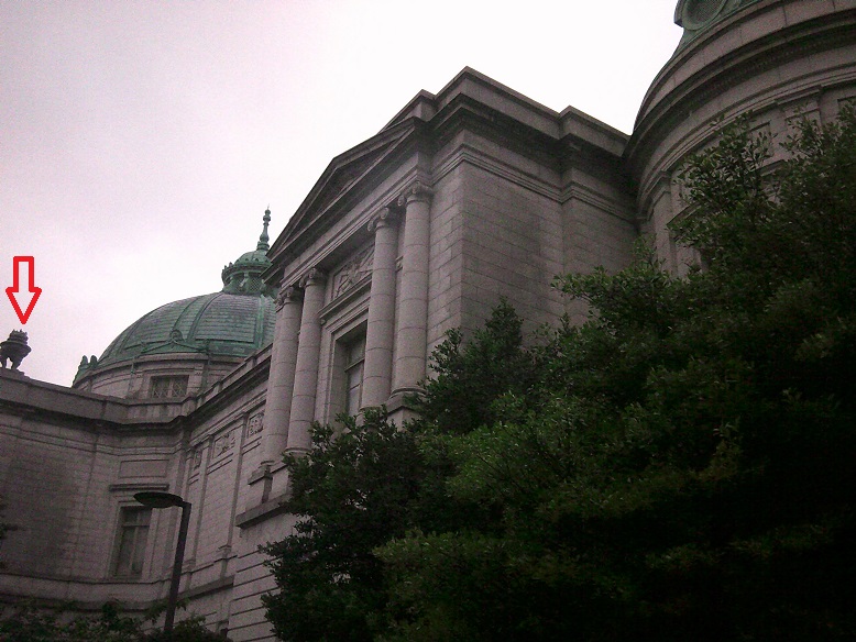表慶館は明治の有名な建築家が造ったんです。それにしても矢印のこれ(鼎に人間の足のついたようなもの)は何なのだろう。