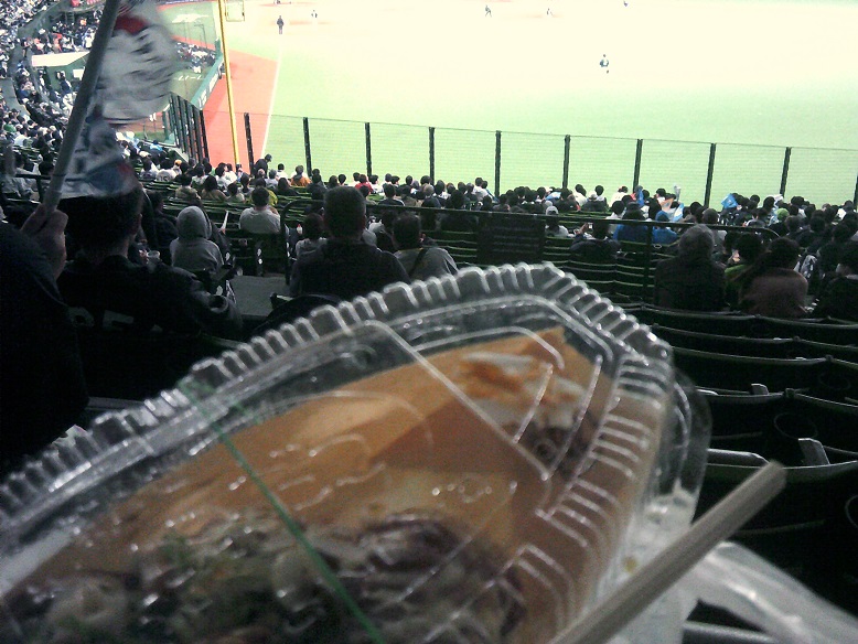 寒いんですが、後ろから四列目ぐらいの席で、雨が降り込んでくるのでミストシャワーみたいになってより寒かった。さすがは全天候型野外球場を名乗るだけありますね。ライオンズ側はやけに景気がいいと思ったら、今日は花咲徳栄のブラバンが来て応援のリードをしてくれているらしい。サスケはいい歌だなあ。