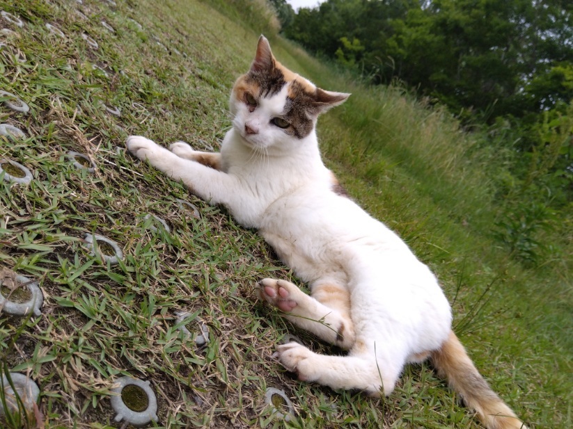 下のネコはいつにもなくのんびりしていて、しりたたきしながら声をかけると明確に返事してくれました。会話が成り立った。最後の方は飽きてきてひっかいてきましたが、おそらく普段縄張り争いしている「ハチ」が何らかの事情でいなくなって、生存競争に勝った(と思っている)ゆとりではないかと思われます。
